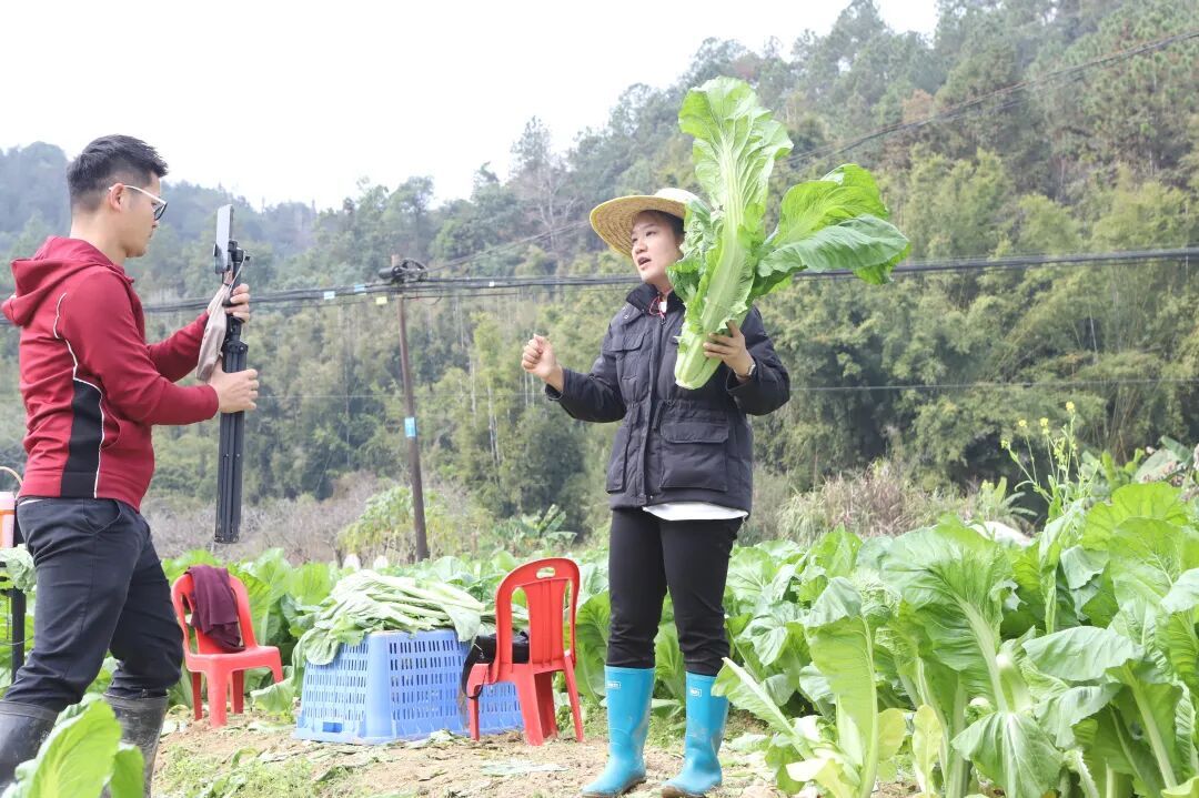 “今年的芥菜品质特别好,很多老顾客专门开车来田间采摘!”种植户丘木房满脸喜色地介绍。吕田大芥菜素来以脆嫩无渣著称,霜冻后的品质更是上乘,无论是清炒、煲汤还是腌制,都别具风味。更让他欣喜的是,今年的芥菜的销售还多了网络主播来帮忙,拓宽了销量途径,销售量也有所提升。网络主播“广东玲姐姐”便是其中一员,她本是到从化观赏梅花的游客,偶然品尝到吕田大芥菜后,被其惊艳口感深深打动,当即决定助力农产品推广。在芥菜种植基地,她以田间为直播间,通过镜头向网友实时展示芥菜的生长环境、采摘过程与品质细节,“好东西就该被更多人知道!”她的真诚分享与沉浸式直播,让网友纷纷下单尝鲜,短短一周便带动销量近万斤,收到的订单好评率不断。